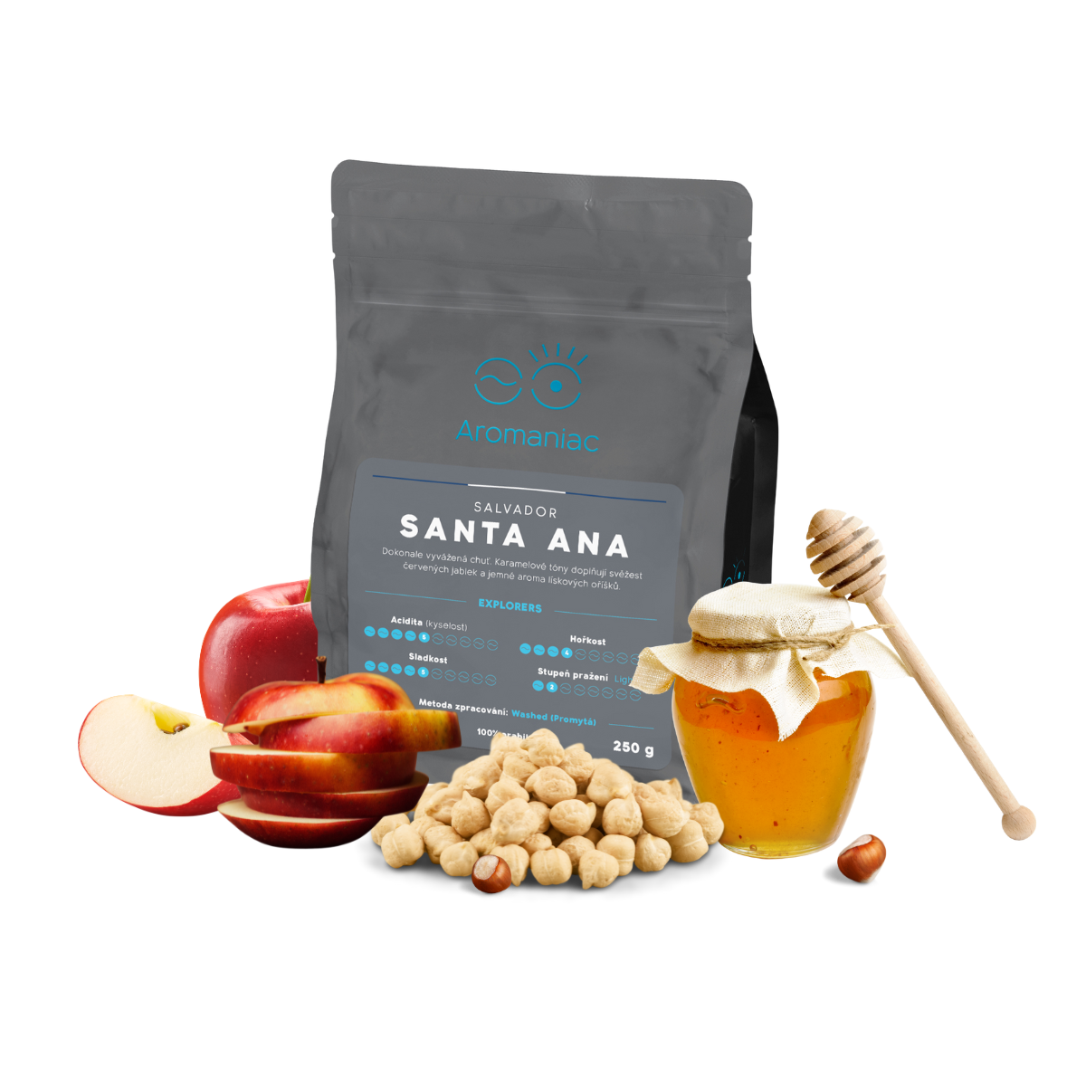 El Salvador Santa Ana sedne těm, kteří mají radši hořkou kávu, než kyselou. Má krémovější, ale ne příliš těžké tělo a ze začátku je hodně intezivně lískooříšková. Postupně v ní ucítíte ale i sladké tóny karamelu a zralých červených jablíček, které postupně přejdou do čokoládové dochuti. Doporučujeme ji vyzkoušet jako klasické espreso i s mlékem – vynikne v kapučínu i flatwhite!
