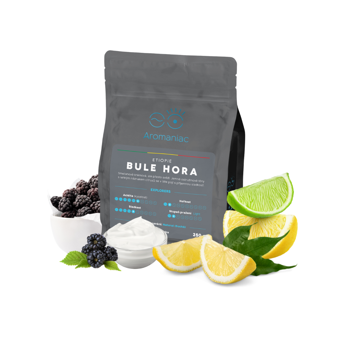 Etiopie Bule Hora je krásně smetanově jemná a zároveň díky naturálnímu zpracování šťavnatá a plná ovoce, ale ne příliš kyselá. V dochuti jde i trochu do hořka. Perfektní káva na páku či do automatického kávovaru, kde z ní připravíte hezky vyvážené espreso, které bude chutnat po ostružinách a citrusech, nebo do French pressu či překapávače jako tmavší ovocný filtr.