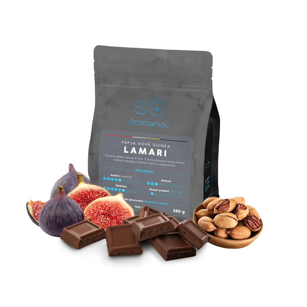 Pokud máte rádi klasické vyvážené oříškovo-kakaové espreso, Papua Nová Guinea Lamari je sázka na jistotu. Má plnější jemné tělo a výraznou chuť lehce nahořklých pekanů a kakaových bobů. Do kysela jde jen lehce. Postupně spíš přechází do sladka, jako když se vám na jazyku rozpustí mléčná čokoláda, a v dochuti ucítíte i šťavnatost zralých fíků. Zkrátka ideální kafíčko na každodenní popíjení.