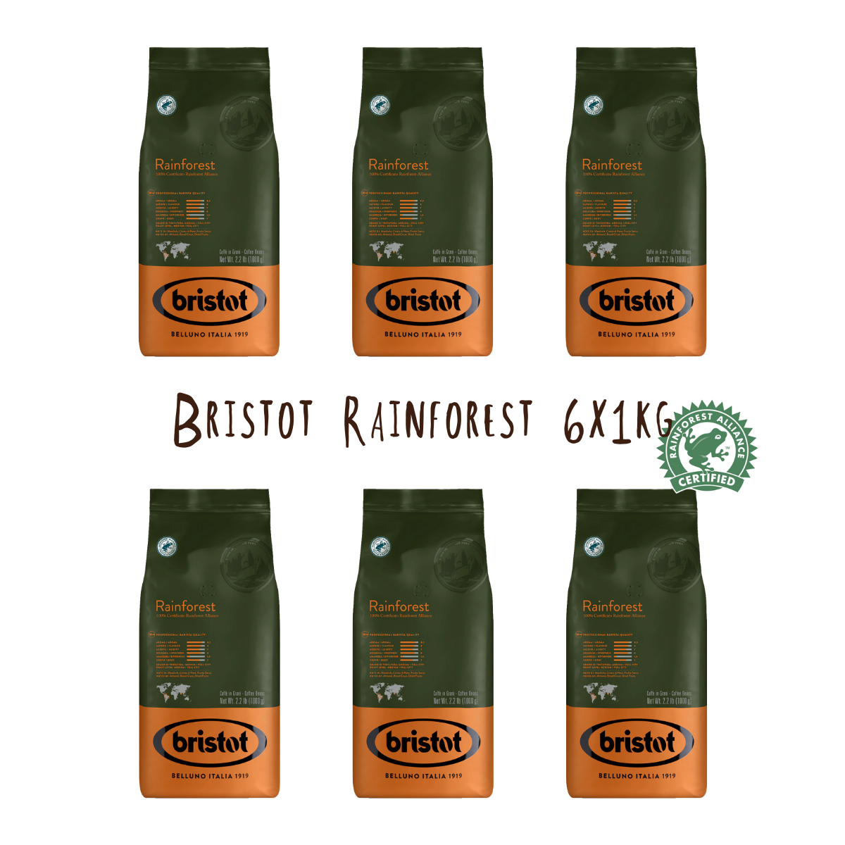 Bristot Rainforest zrnková káva 6x 1 kg