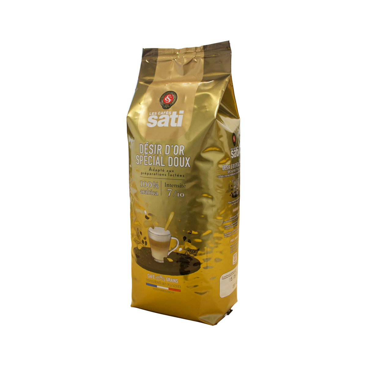 Sati Désir d‘Or Spécial Doux je sametově jemná vyladěná směs 100% Arabik a právem patří mezi nejoblíbenější v nabídce Café SATI. Je skvělá pro přípravu ve všech kávovarech i moka konvičce a nejlépe chutná v kombinaci s mlékem. Doporučujeme ji do kapučína a flatwhite.
