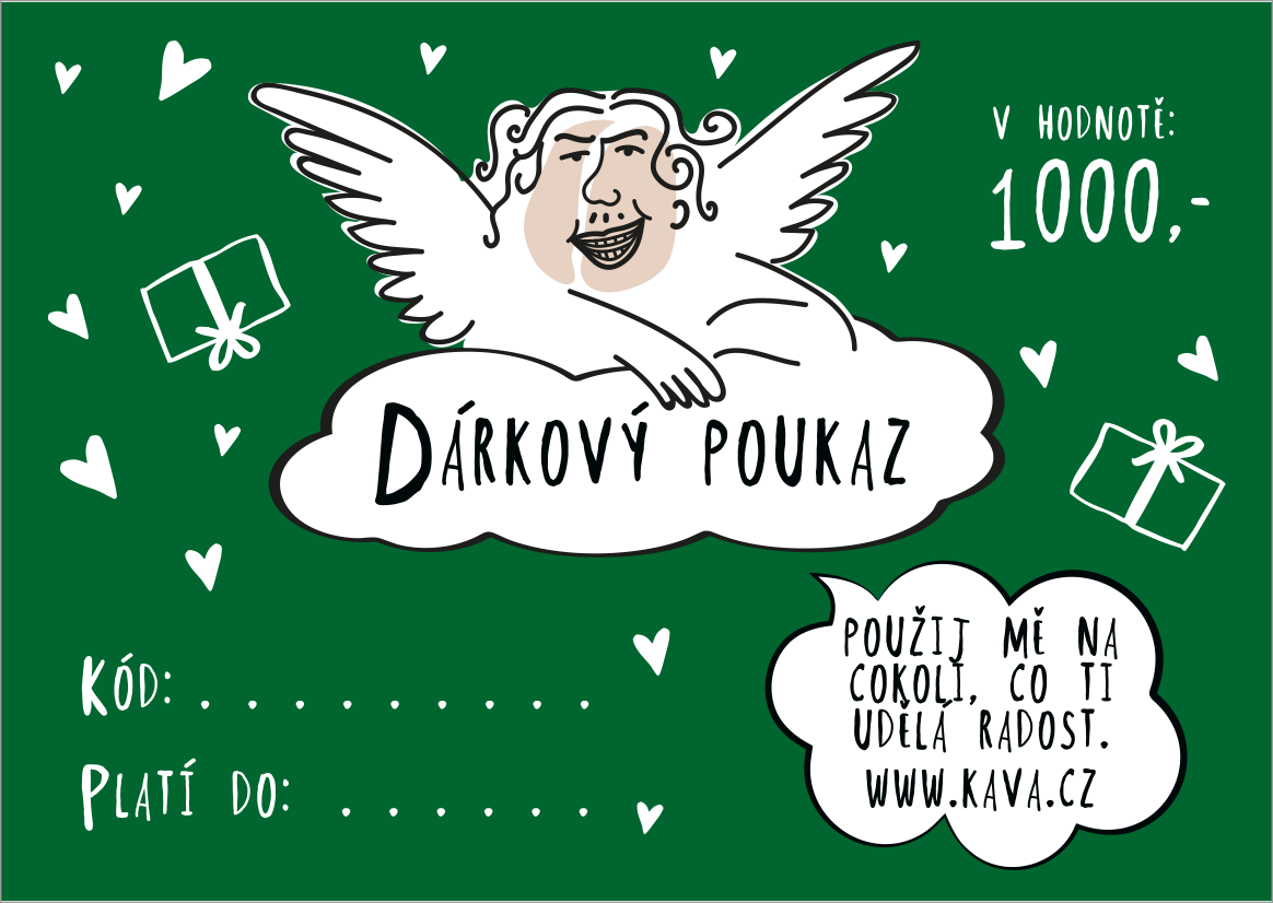 Štědrý dárkový poukaz pro milovníka kávy pro nákup libovolného zboží na KAVA.CZ v hodnotě 1000 Kč.