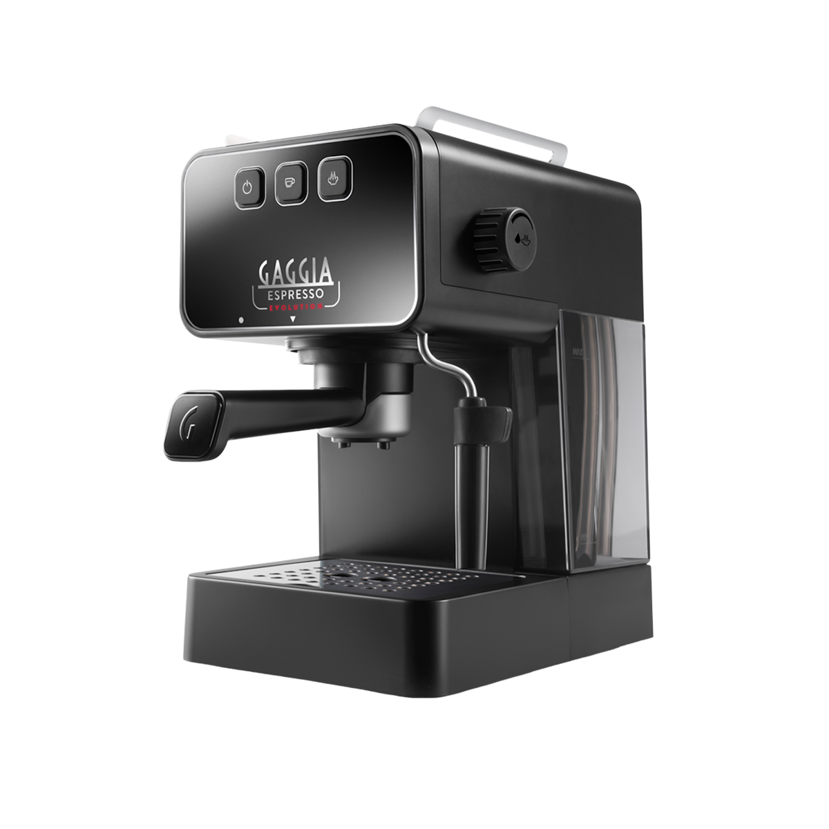 GAGGIA Espresso Evolution je malý, jednoduchý a dobře vyrobený kávovar pro začínající baristy. V černé barvě.