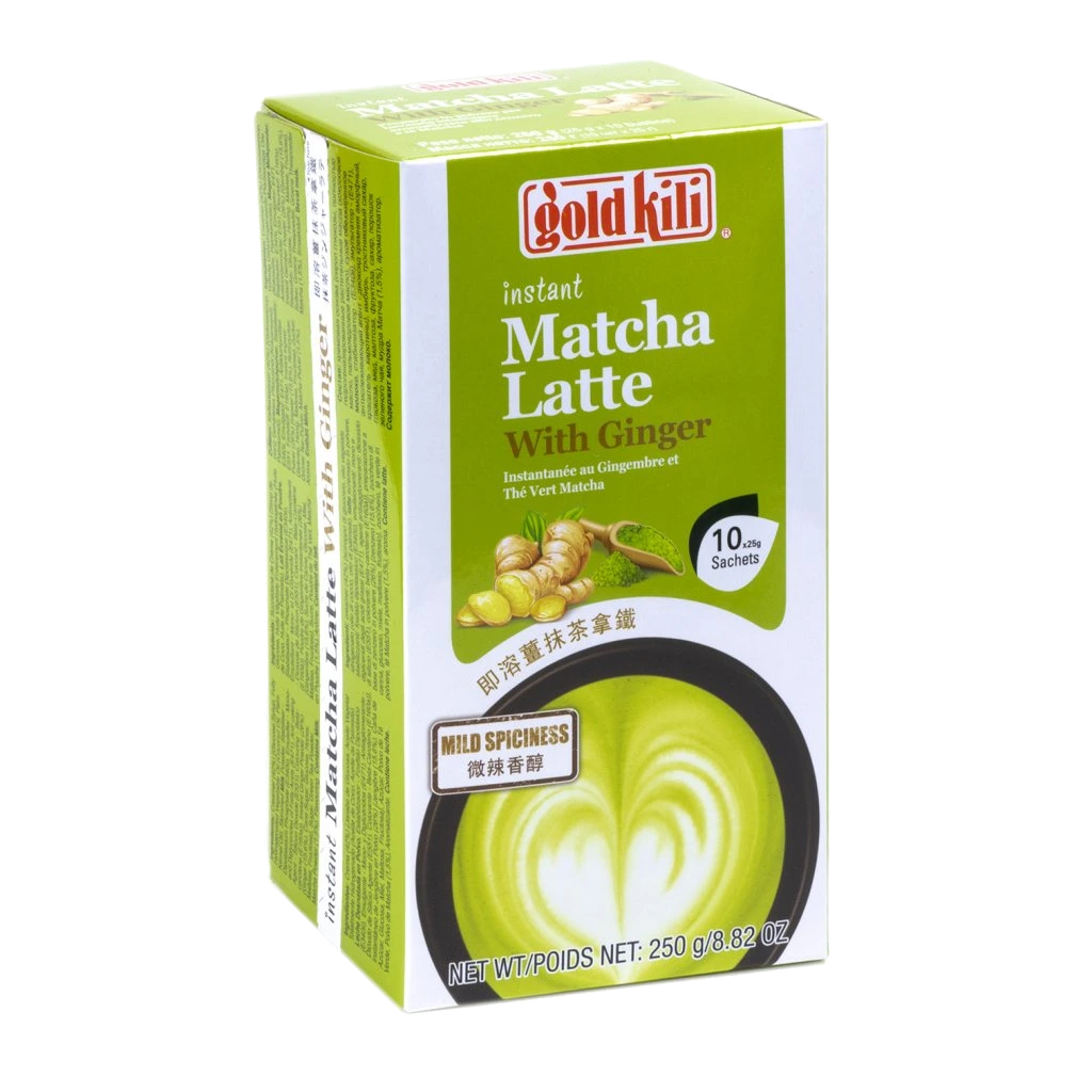 Instantní Matcha Ginger Latte je slazený instantní mléčný nápoj. Zajímavá kombinace zeleného čaje a zázvoru v praktickém balení 25g sáčků.