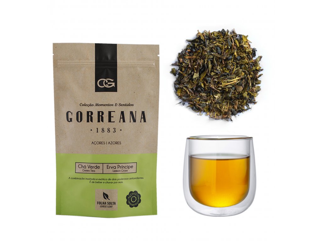 Lahodný azorský zelený čaj se zlatavým nálevem a neobvyklou citrusovou chutí. Za vším hledejte citrusovou trávu.