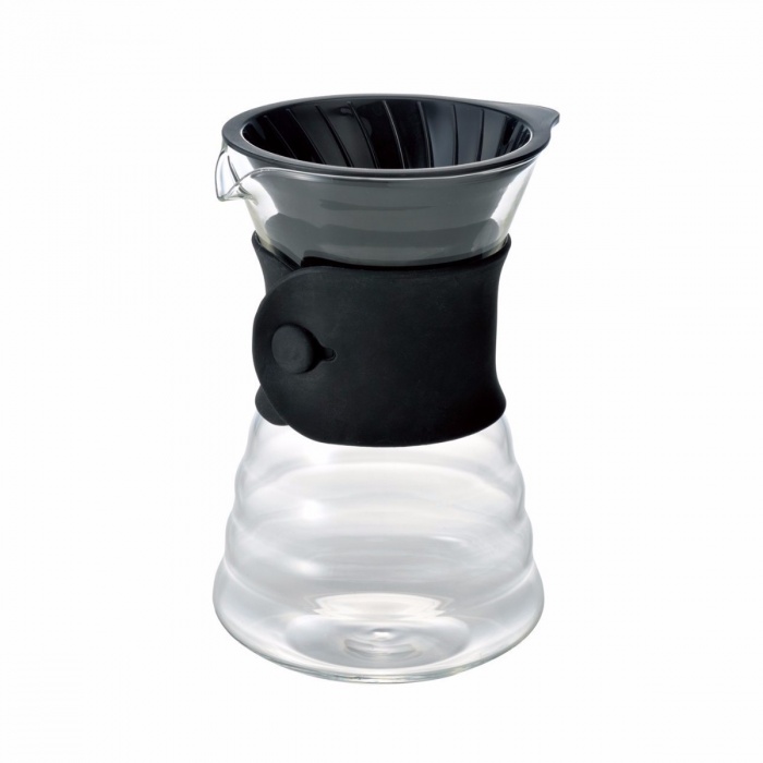 Šikovná kávová sada dripperu Hario V60, elegantního dekantéru a balení filtrů na kávu pro přípravu filtrované kávy.