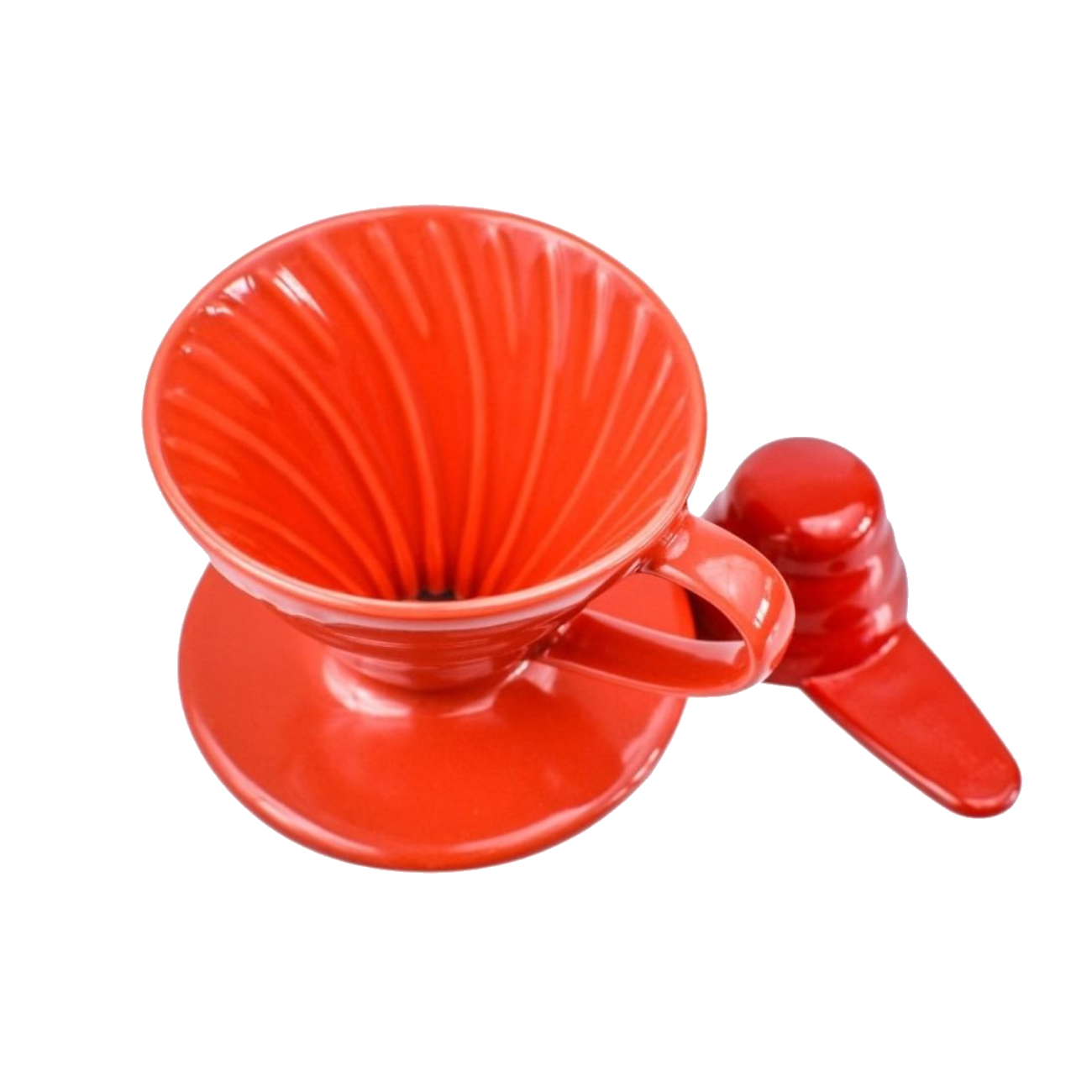 Keramický dripper Hario pro přípravu filtrované kávy. Červený keramický.