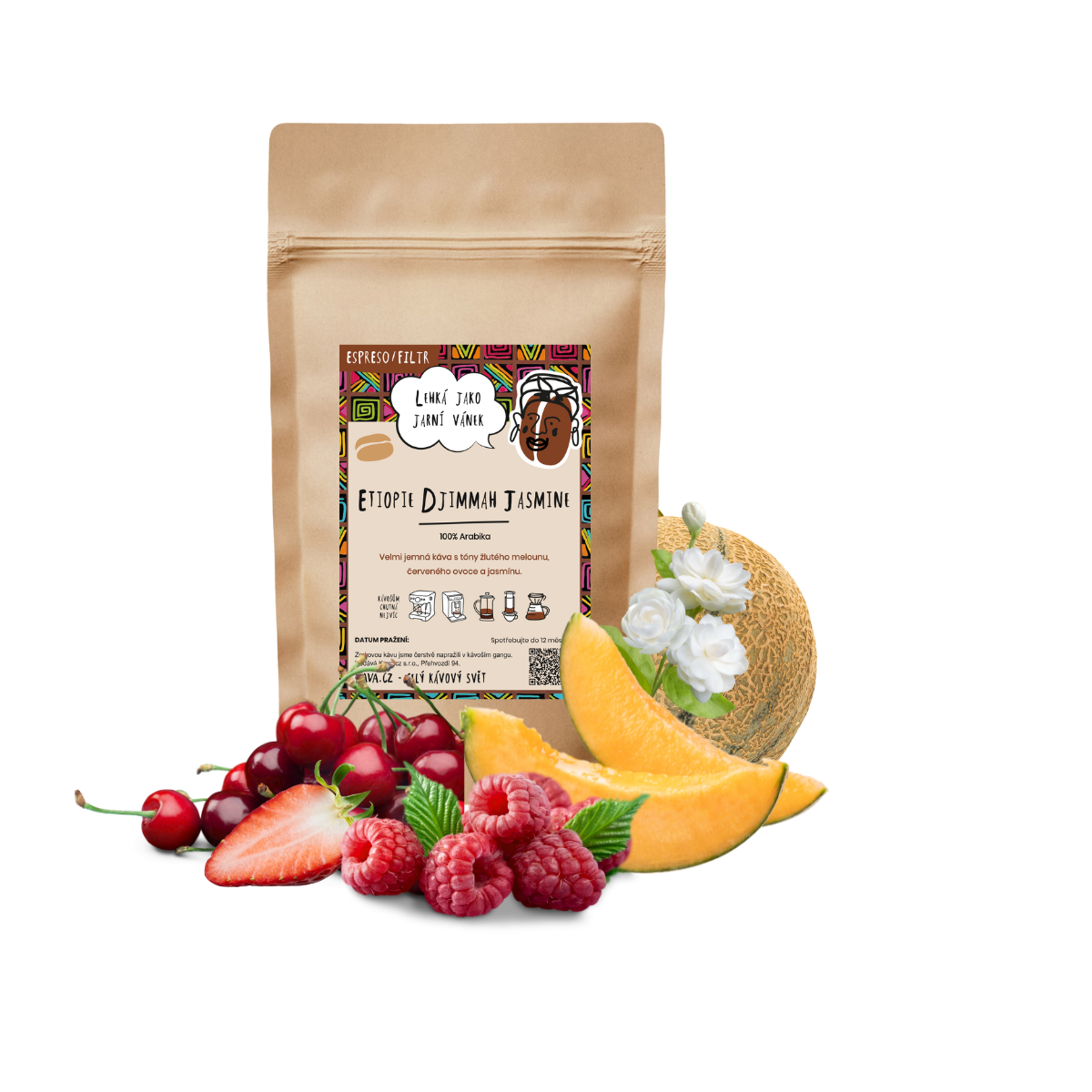Etiopie Djimmah Jasmine potěší zejména všechny milovníky klasických květinových Etiopií. Je lehká, má velmi jemné tělo a krásně voní po jasmínu. Chutná hezky šťavnatě jako červené ovoce, ale zároveň není moc kyselá, naopak. Na konci vás překvapí slaďoučkou dochutí zralého žlutého melounu. Připravíte z ní skvělé ovocné espreso.