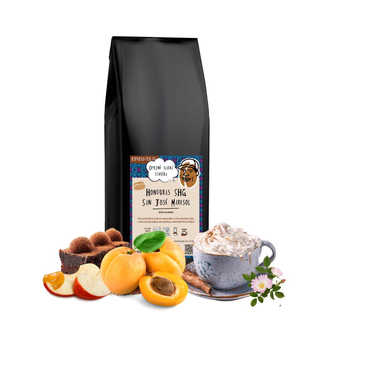 Káva Honduras SHG San José Maresol je převážně sladká jako zralé meruňky a jablka, hodně voňavá po divokých růžích a mandarinkách a v dochuti díky tmavšímu pražení intenzivní a kakaová, trochu jako brownies. Kyselé tóny v ní téměř neucítíte, jde spíš trochu více do hořka. Perfektní volba na espreso i v kombinaci s mlékem.