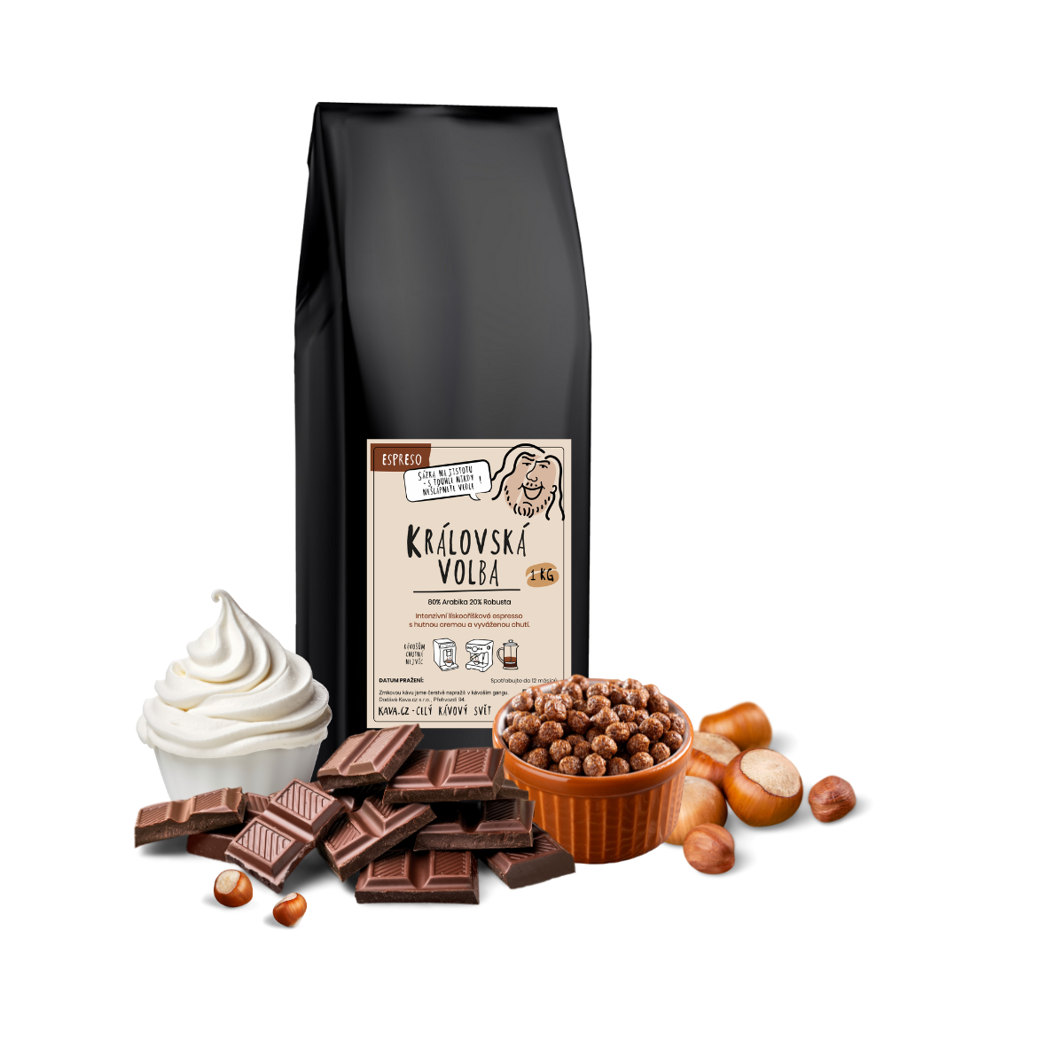 Káva Královská volba je Svatý grál pro váš automatický kávovar. Vždy čerstvě napražená bez stopy kyselosti s chutí připomínající hořkou čokoládu s oříšky. Při nákupu od 1 kg máte dopravu zdarma!