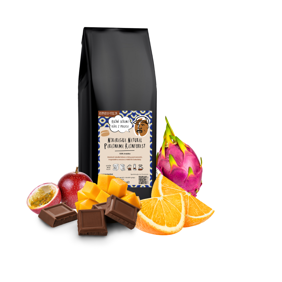 Jako když se zakousnete do tabulky čokolády s pomerančem, nebo do sušeného tropického ovoce v čokoládové polevě, tak přesně chutná Parainema Rainforest. Na jazyku je hezky sladká, má plnější tělo, ale překvapivě není příliš těžká. Pražíme ji na filtr i espreso.
