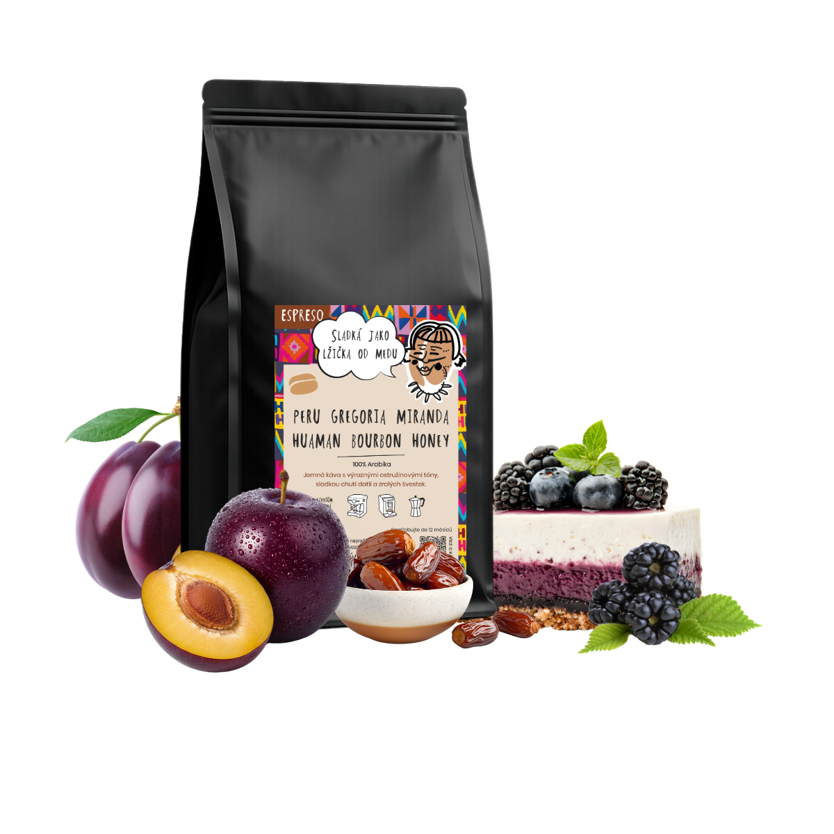 Peru Gregoria Miranda Huaman je nejsladší espreso v kávoší nabídce. Chutná jako lžička od medu. Doslova. Ucítíte v něm datle, zralé tmavé švestky a ostružiny, díky kterým je káva v dochuti i lehce nakyslá a svěží. Ať se rozhodnete ji připravit v automatickém či pákovém kávovaru, nebo v moka konvičce, zaručeně vám zlepší ráno.