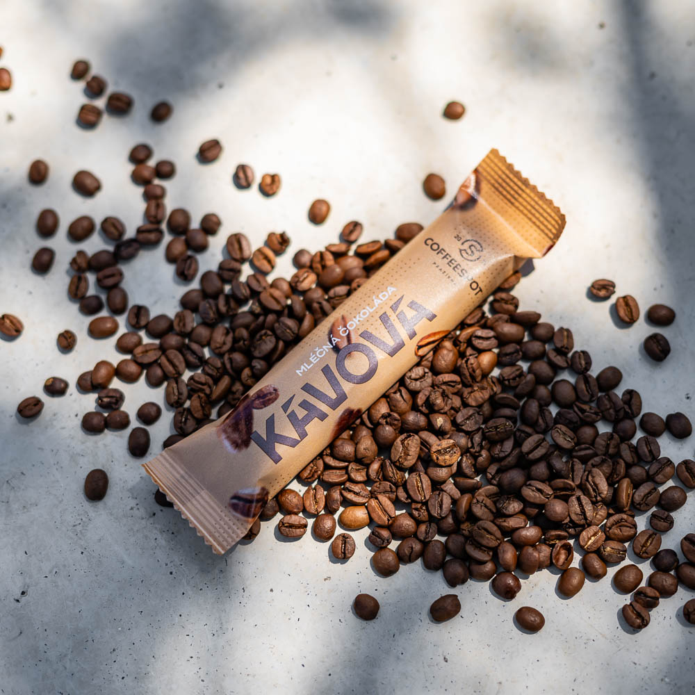 Ručně vyráběná čokoládová tyčinka s kávovou náplní.