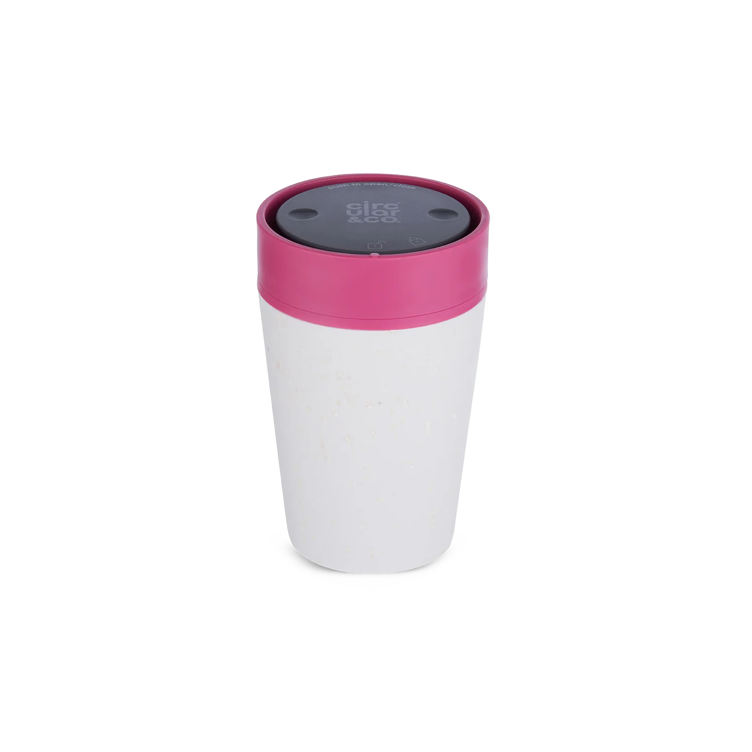 Bílo-růžová verze recyklovatelného kelímku Circular Cup o objemu 227 ml. Ideální volba na espreso, či kapučíno. Nepálí do ruky, udrží nápoje teplé (nebo studené) až 90 minut a skvěle se z něj pije, protože se po otevření zvedne po celém obvodu, nemá jen malou dírku. A neteče!