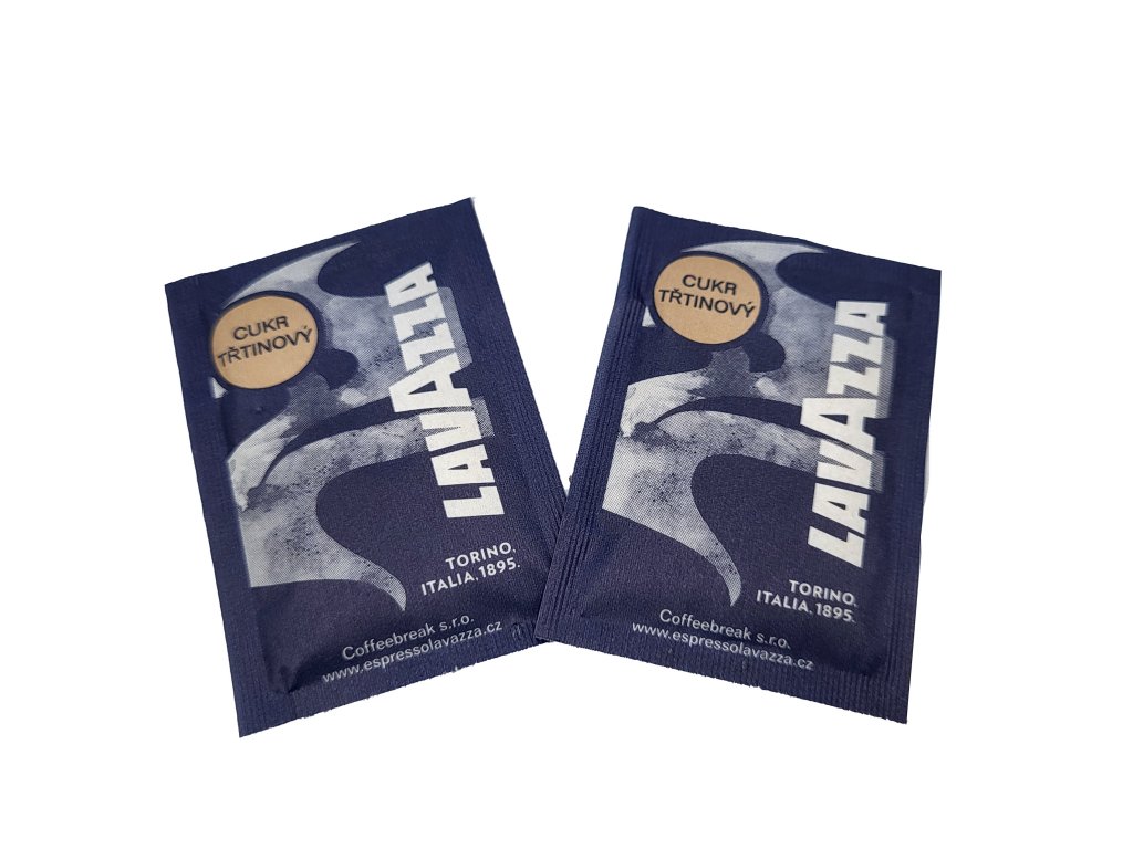Hygienicky balený třtinový cukr s logem Lavazza. Vhodný pro kanceláře či restaurace.