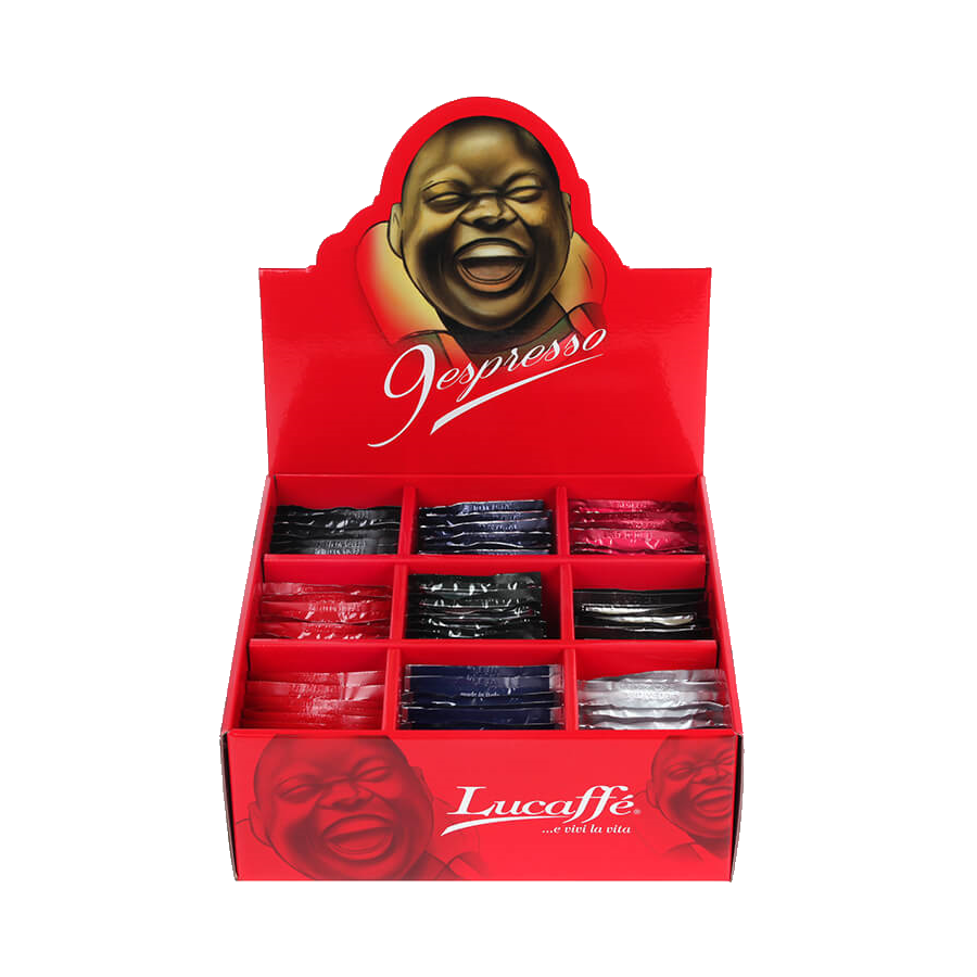 Lucaffé gourmet box s 81 E.S.E pody. Všechny druhy kávy značky Lucaffé v typickém italském pražení na espreso.