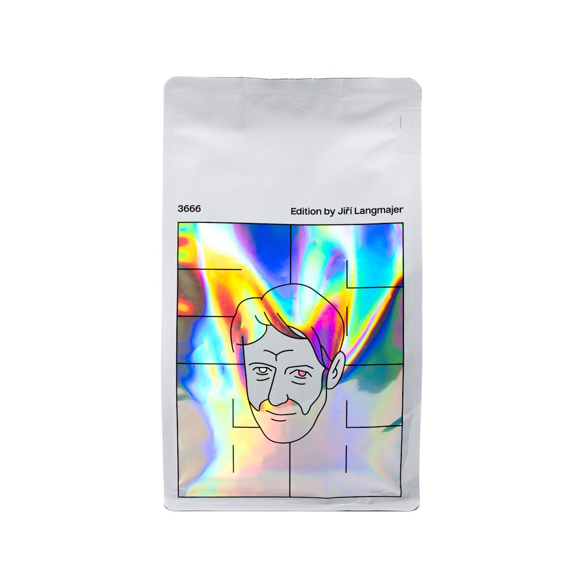 Narozeninová káva z kolekce "Edition by Jiří Langmajer" v originálním obalu s holografickou grafikou ze STUDIA NAJBRT pro káva 3666.