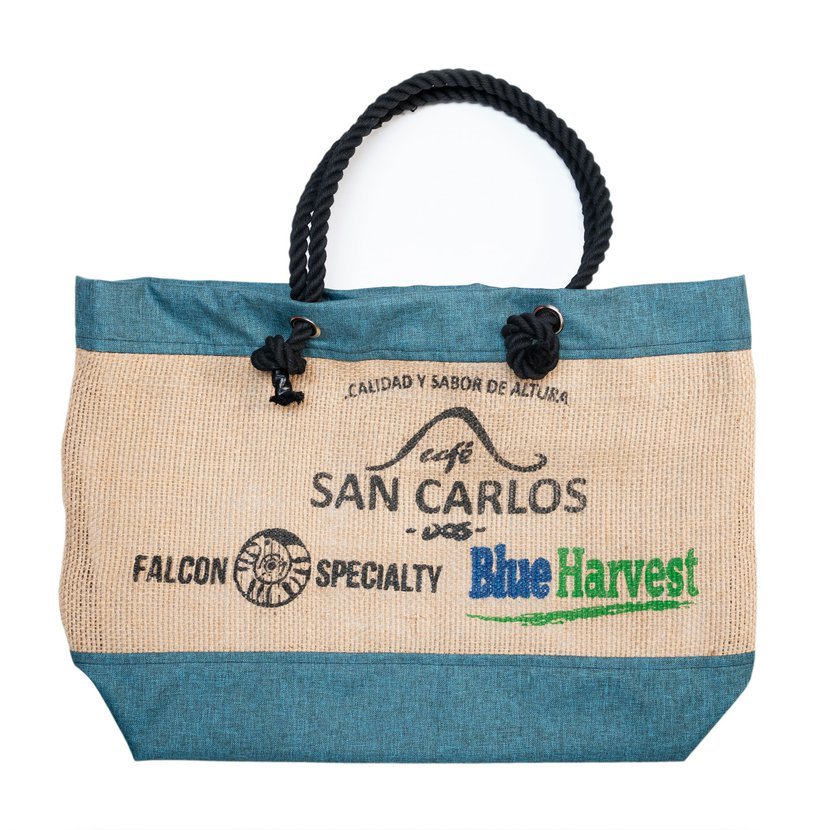 Velká plážová taška nejen k vodě, ale i na větší nákupy. Každá taška je originál vyrobený z kávových jutových pytlů.