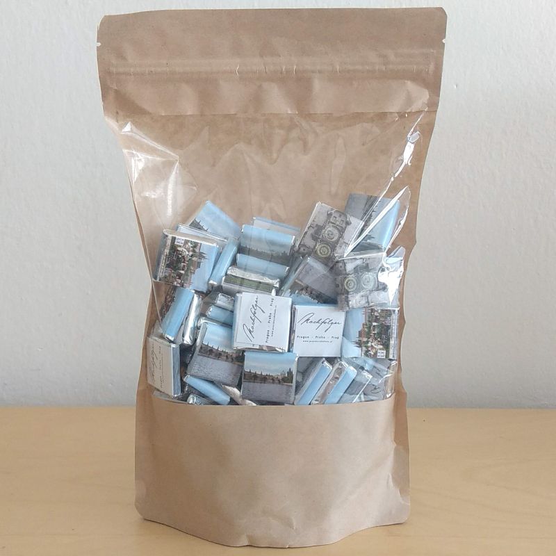 Čokoládové miniaturky z kvalitní mléčné 32% čokolády od Pražské čokolády.