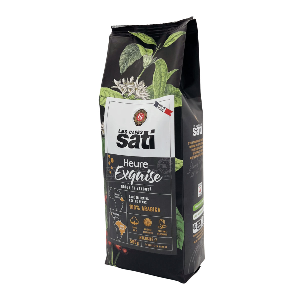 Café SATI Heure Exquise chutná čokoládově až lehce pikantně. Pražiči ji doporučují pít po jídle, ideálně nějakém skvělém obědě, jako takovou delikátní tečku, ale můžete si ji vychutnat i po ránu, nebo kdykoliv během dne. Jde o směs 100% Arabik z Latinské Ameriky a východní Afriky.