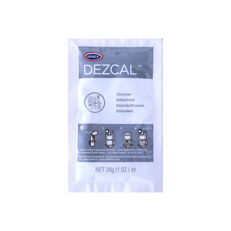 Urnex Dezcal dekalcifikační prášek je jedna porce prášku pro přípravu odvápňovacího roztoku.