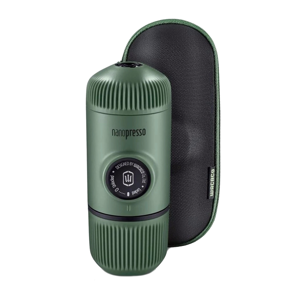Cestovní kávovar v zelené barvě pro přípravu espresa bez použití elektrické energie včetně cestovního pevného pouzdra. Stačí horká voda v termosce a oblíbená káva.