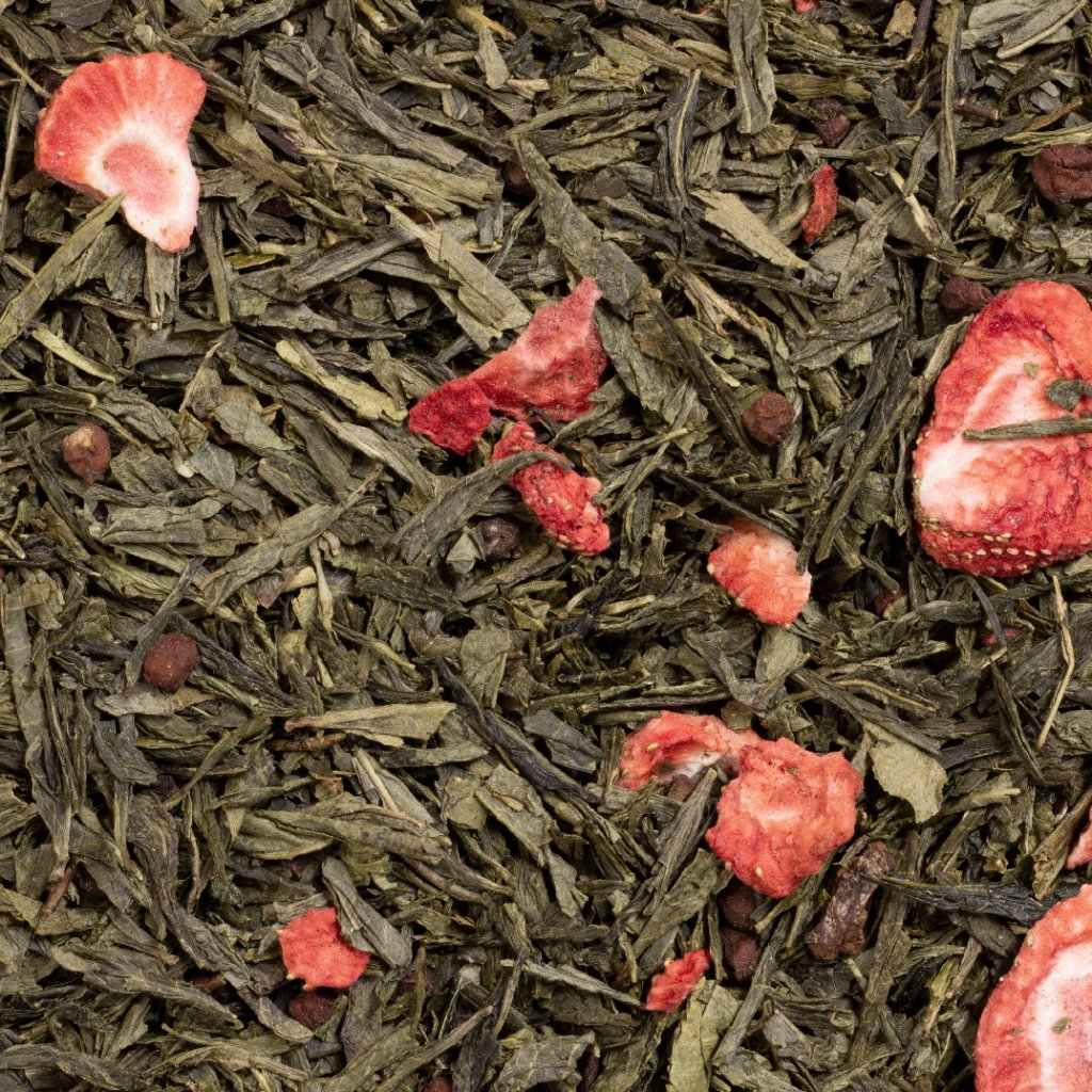 Kvalitní zelená Sencha s jahodami, schizandrou, skořicí a zcela přírodním aromatem.